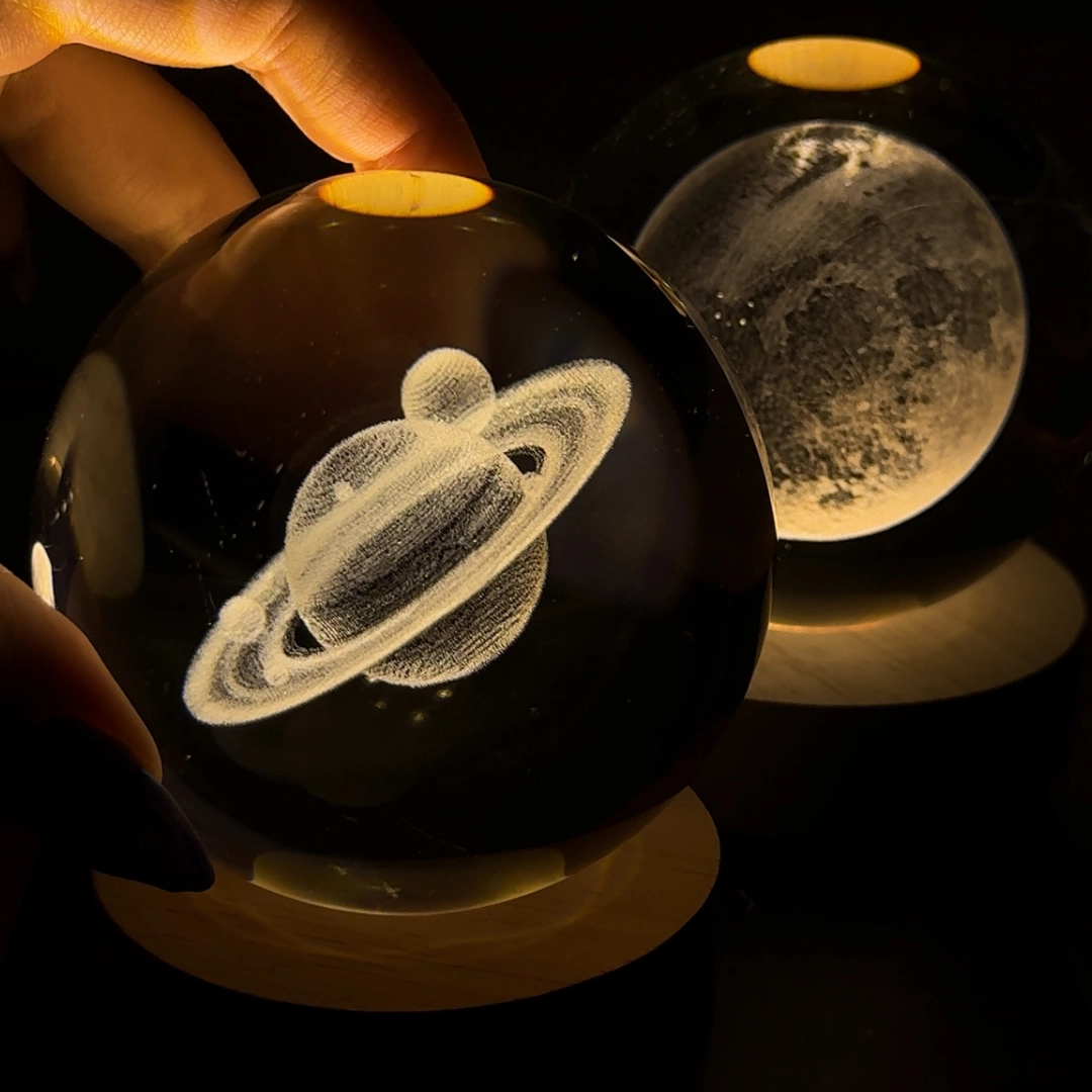 У кожній кулі мікровсесвіт, що притягує погляд і думки. Настільки детальне 3D-гравіювання, що здається ніби хтось ув’язнив цілий Всесвіт у склі