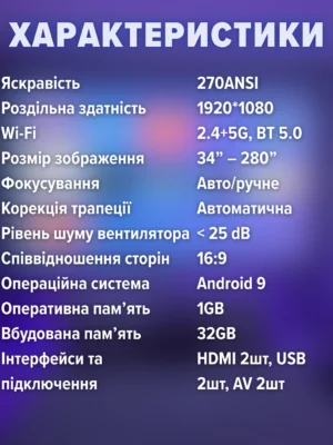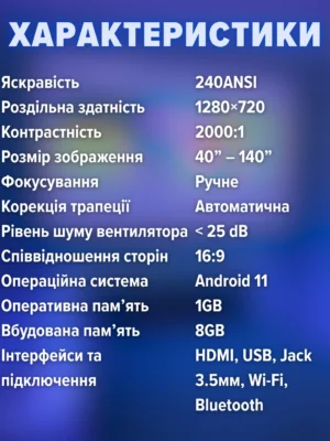 Підключіть проектор до ноутбука, смартфона чи консолі – і насолоджуйтесь великим екраном. Налаштування займає лише кілька хвилин, а інтуїтивне меню робить користування зрозумілим навіть для новачків.