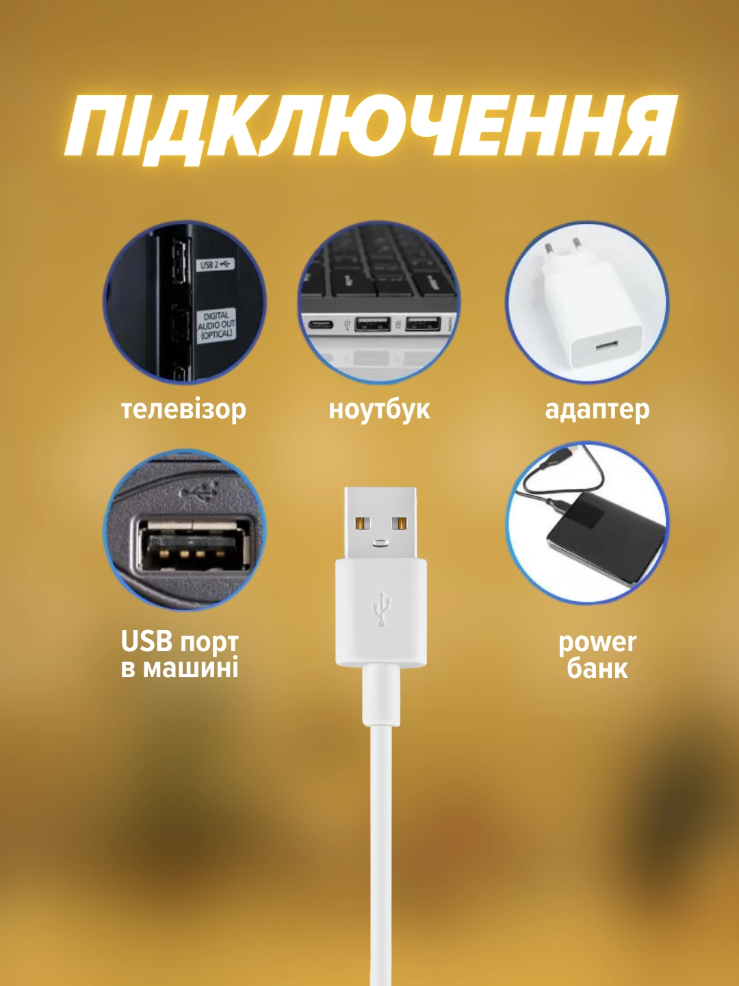 ✔ Живлення через USB — під’єднуйте до розетки, ноутбука чи павербанка