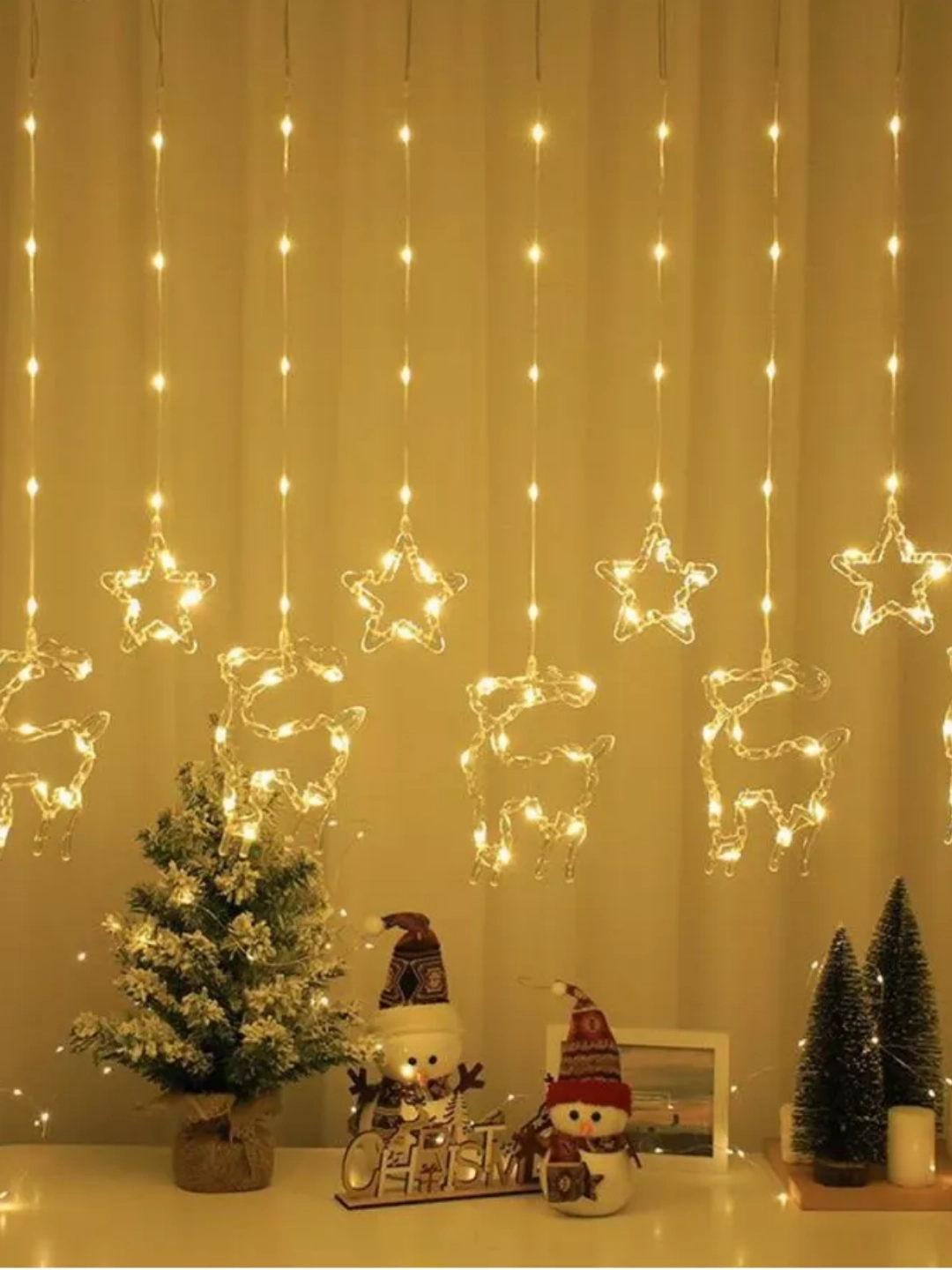 Декоративна гірлянда олені — це водоспад сяючих вогників, який огортає простір теплом і святковим настроєм. Завдяки розміру 3м×80см×65см вона ідеально підходить для оформлення стін, вікон, фотозон, вітрин чи балконів. Легке мерехтіння створює затишну атмосферу й додає нотку чарівності будь-якому простору.