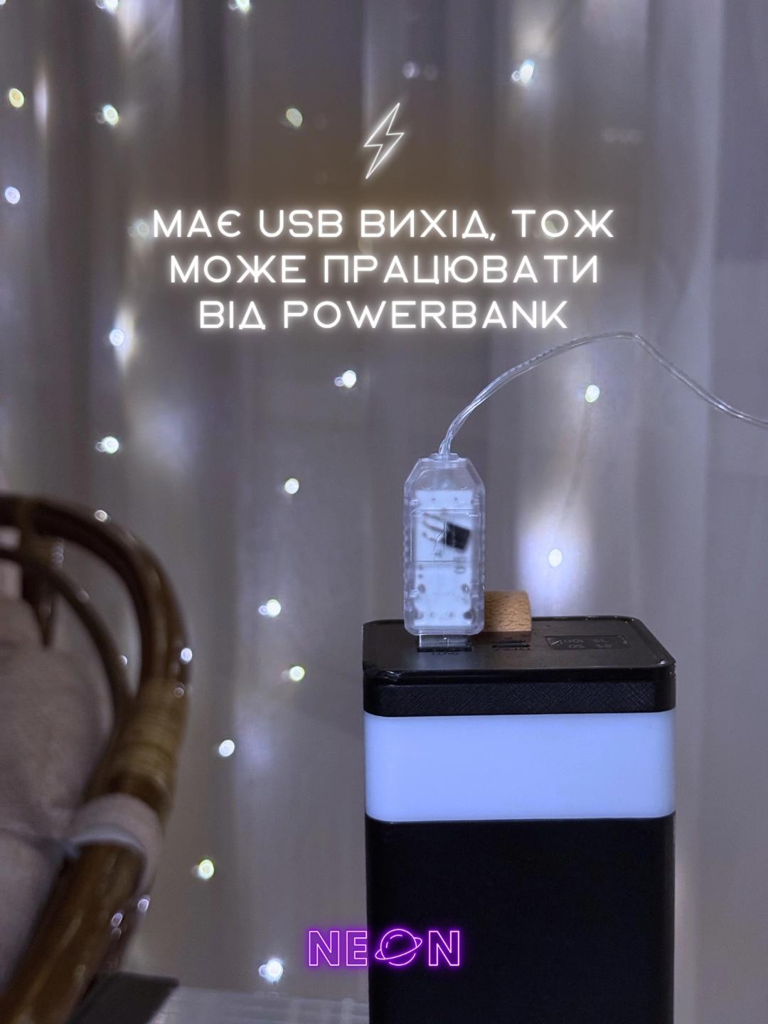 ✔ Живлення через USB — під’єднуйте до розетки, ноутбука чи павербанка