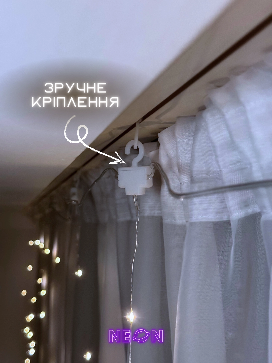 ✔ Легке кріплення — м’які нитки легко розвішуються на будь-якій поверхні
