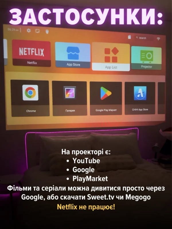 • Автономна робота — вбудовані YouTube, Google, PlayMarket (Netflix НЕ ПРАЦЮЄ!!). Можливість встановлювати Sweet TV, Megogo та інші додатки.