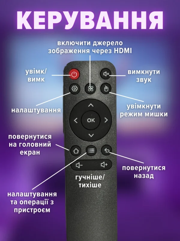 • Проекційне покриття: відстань до стіни 1–5 м, діагональ до 120″