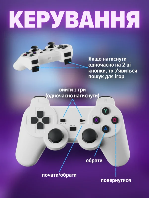 • Ігри всередині — понад 19 000 ретроігор (Mario, Sonic, Mortal Kombat та ін.) + 2 бездротові джойстики у комплекті.