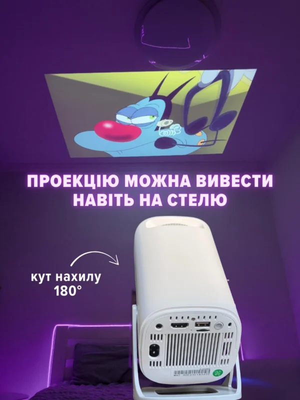 • Універсальне розташування — кут нахилу до 180°, проекцію можна вивести навіть на стелю.