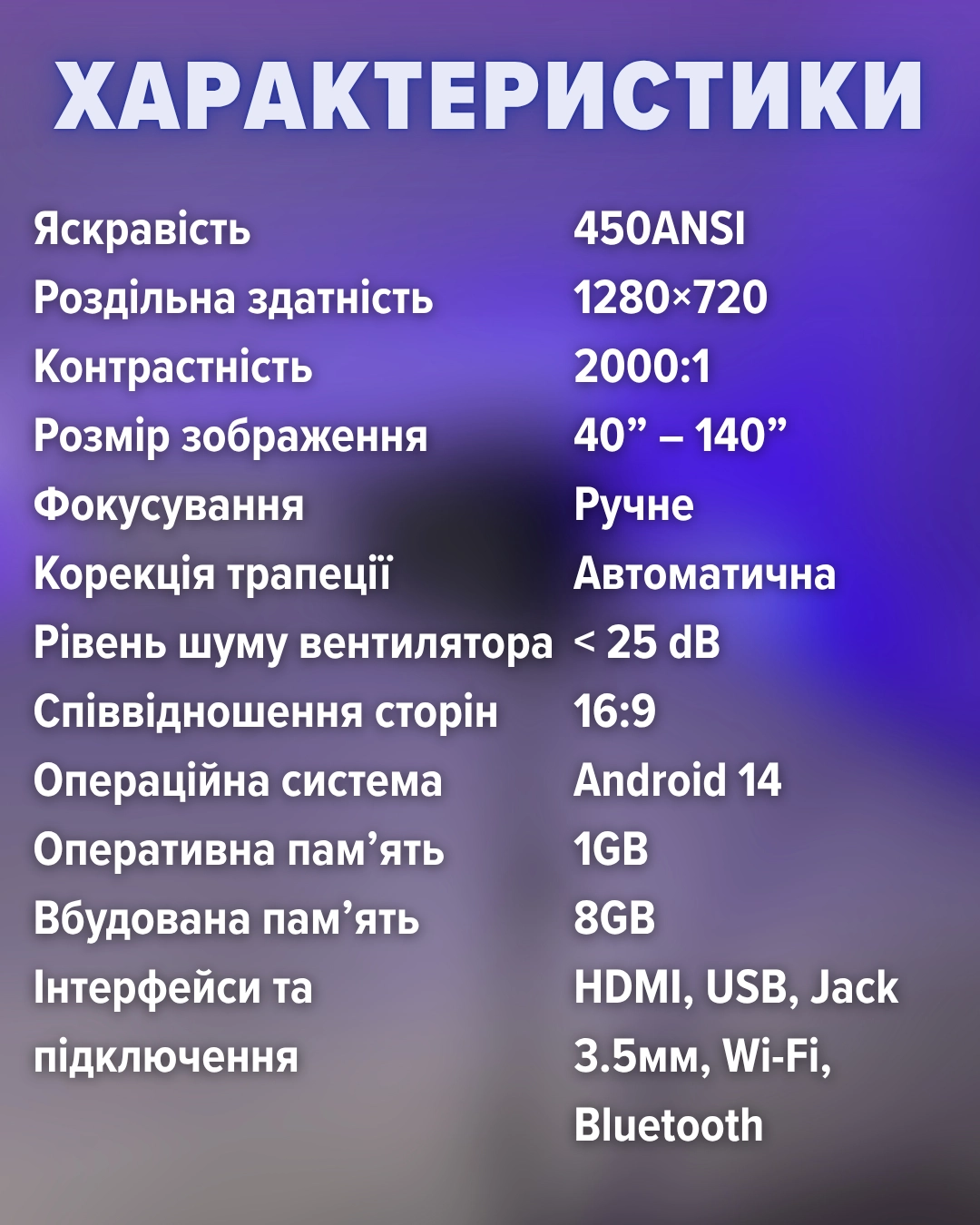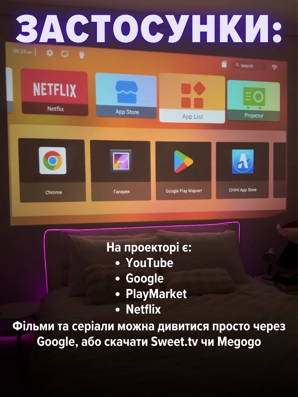 Проектор працює автономно — без додаткових приставок чи складних налаштувань. Просто увімкнув і насолоджуєшся контентом 🙌🏻
