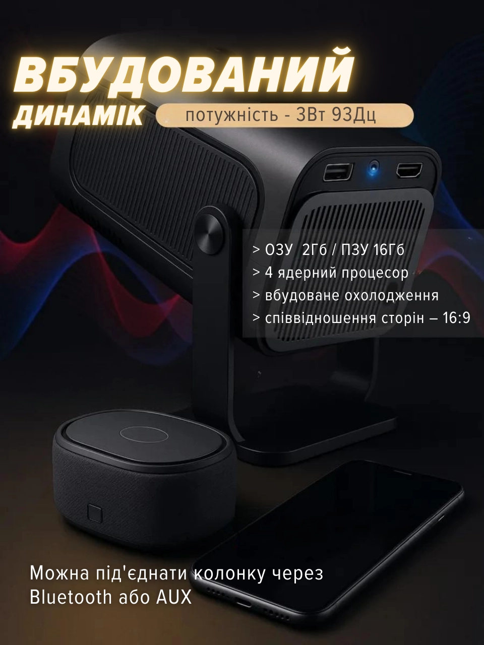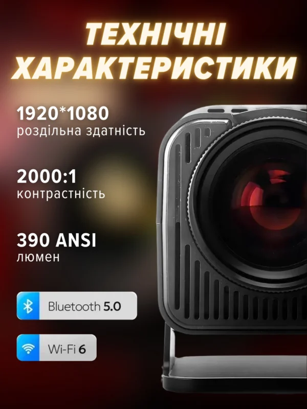 • Якісне зображення — HD (1280×720), яскравість 390 ANSI, контрастність 2000:1, діагональ до 120″.