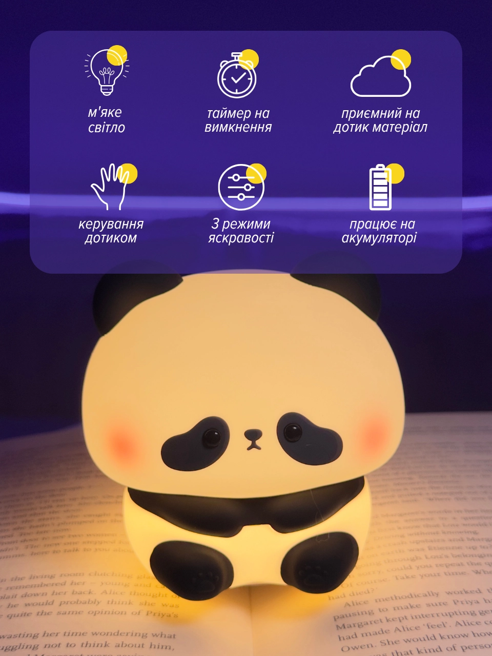 Нічник виготовлений із м’якого силікону, який абсолютно безпечний для дітей. Він не нагрівається під час роботи, тому малюки можуть не тільки засинати поруч із ним, а й обіймати його у сні.
