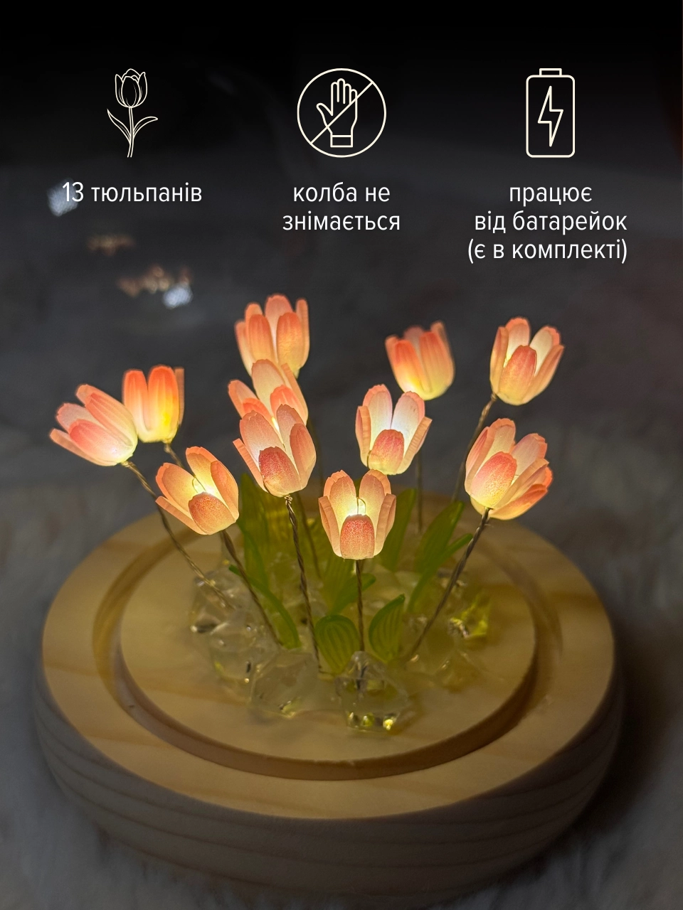 Пориньте у світ ніжності та затишку з нашим милим нічником із тюльпанами. Він стане ідеальним подарунком для коханої людини або стильним доповненням до вашого інтер’єру.