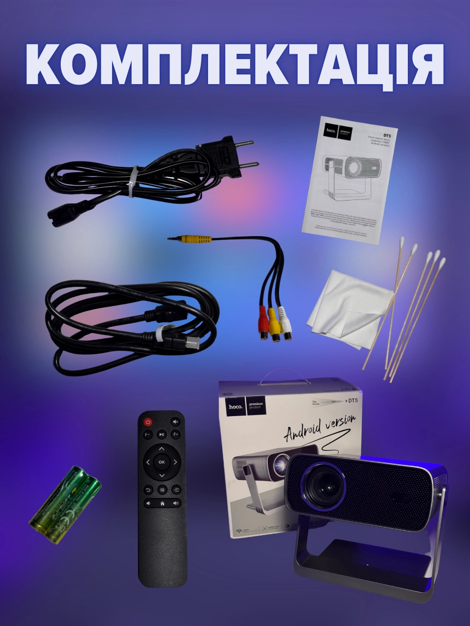 Hoco DT5 – це універсальний домашній кінотеатр із підтримкою Full HD 1080p, автофокусом та вбудованою ОС Android. Він поєднує високу якість зображення, сучасні технології та зручність управління, перетворюючи будь-який простір у повноцінний медіацентр для фільмів, ігор, навчання та роботи.