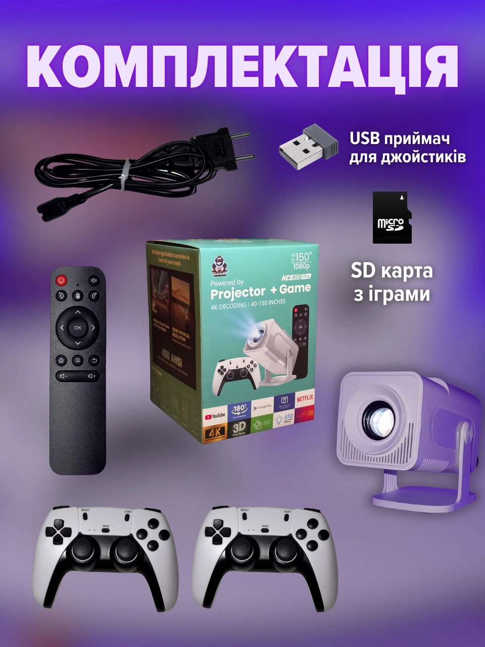 Проектор HCS350 Max — це універсальний мультимедійний пристрій, який поєднує перегляд фільмів, ігри та Smart-функції в одному компактному корпусі. У комплекті є два бездротові джойстики та пульт, тож ви можете одразу почати грати без додаткових налаштувань. Понад 20 000 встановлених ігор роблять цей проектор чудовим варіантом для всієї родини та фанатів ретро-геймінгу.