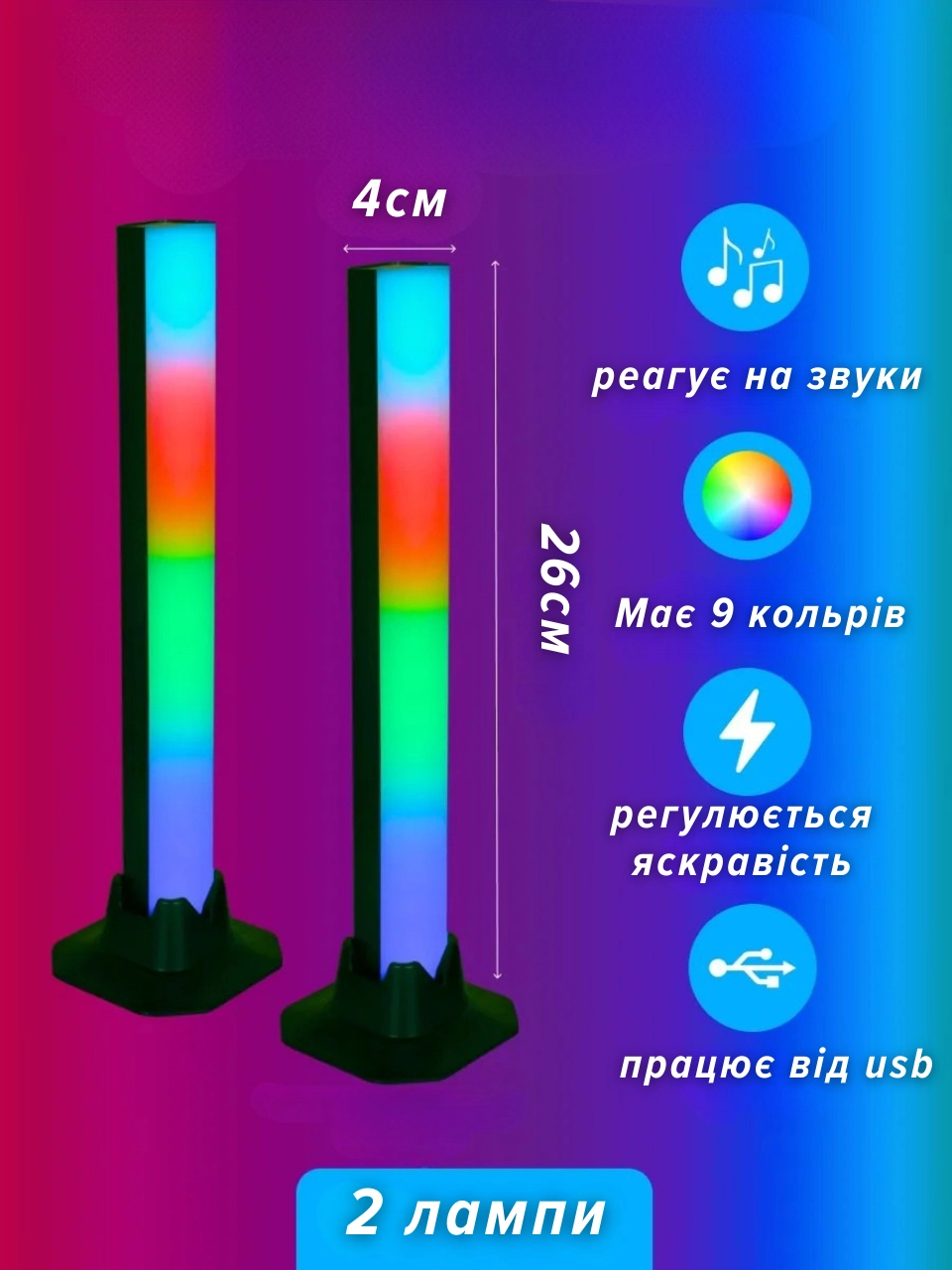 ✔ Реакція на музику – завдяки вбудованому мікрофону світло синхронізується з ритмом пісень, ігор чи фільмів